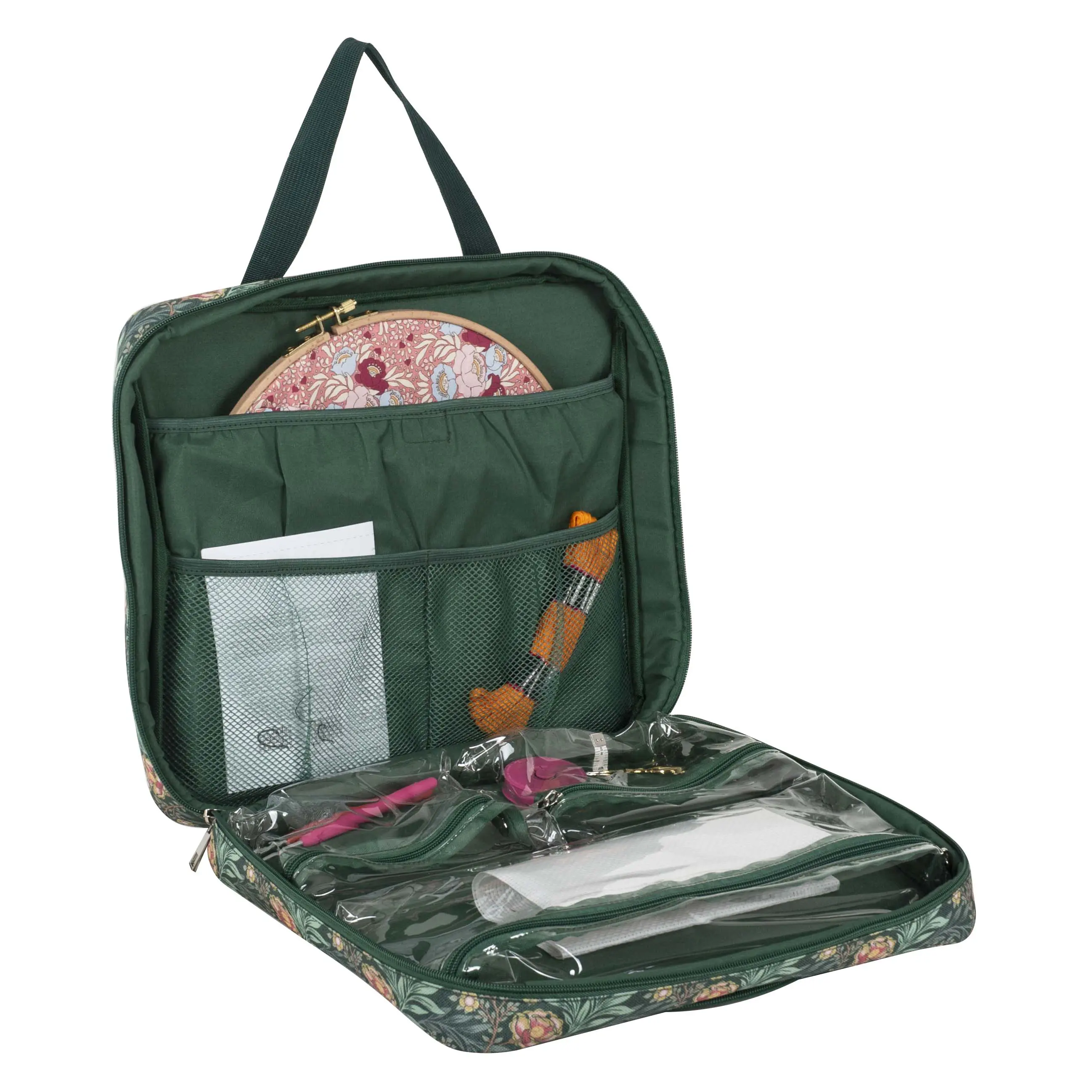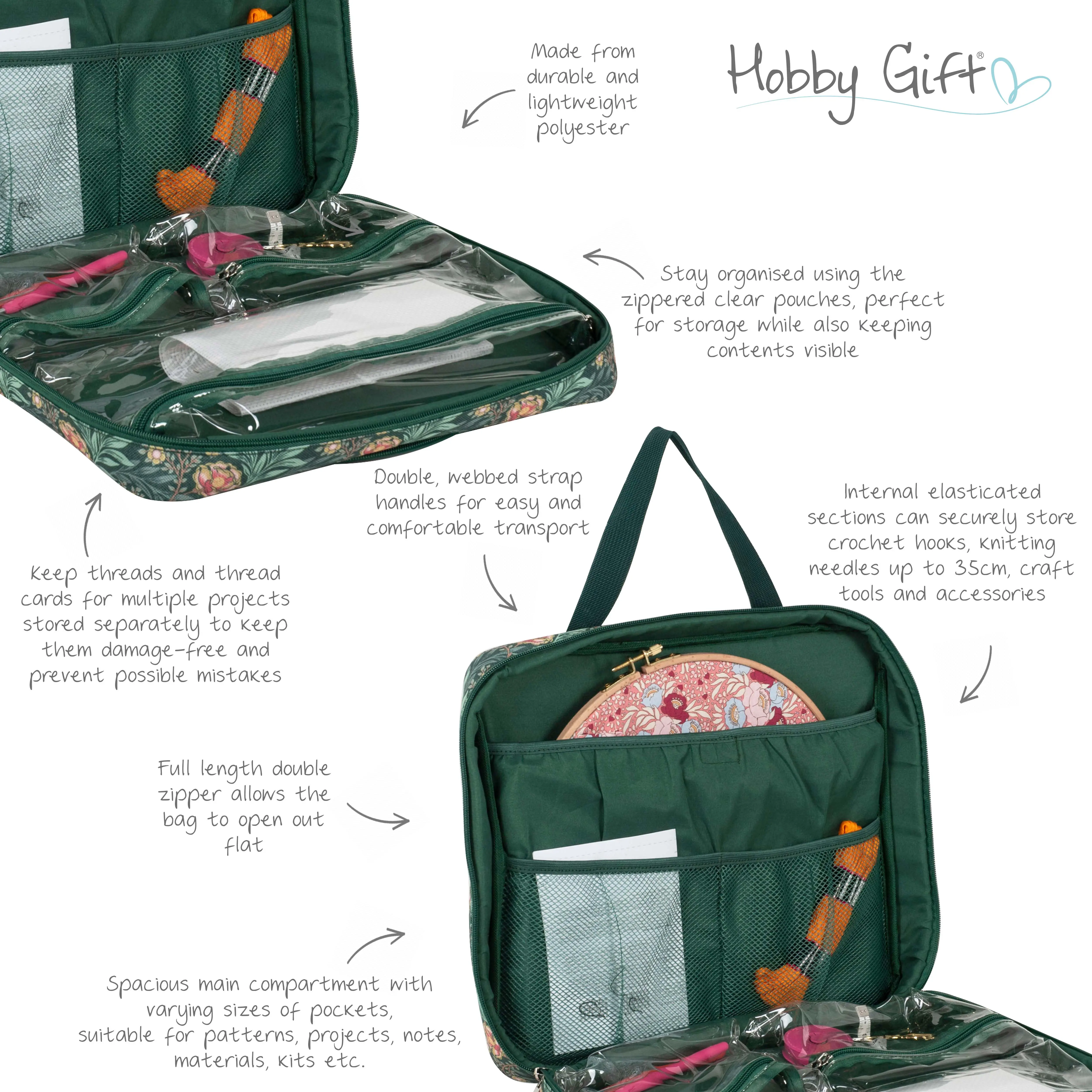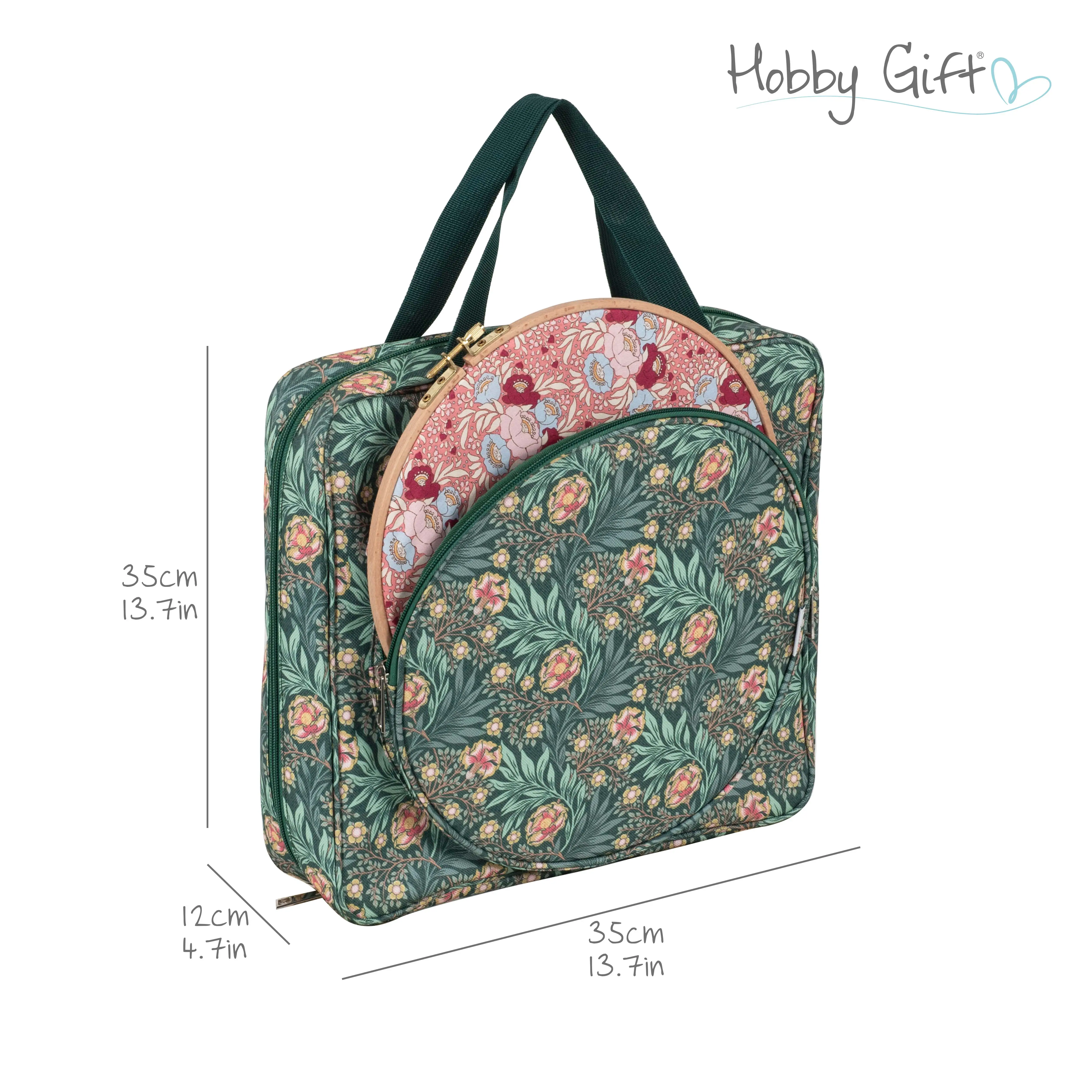 Hobby Gift Project & Craft Bag with Embroidery Hoop Storage – Morris Green
