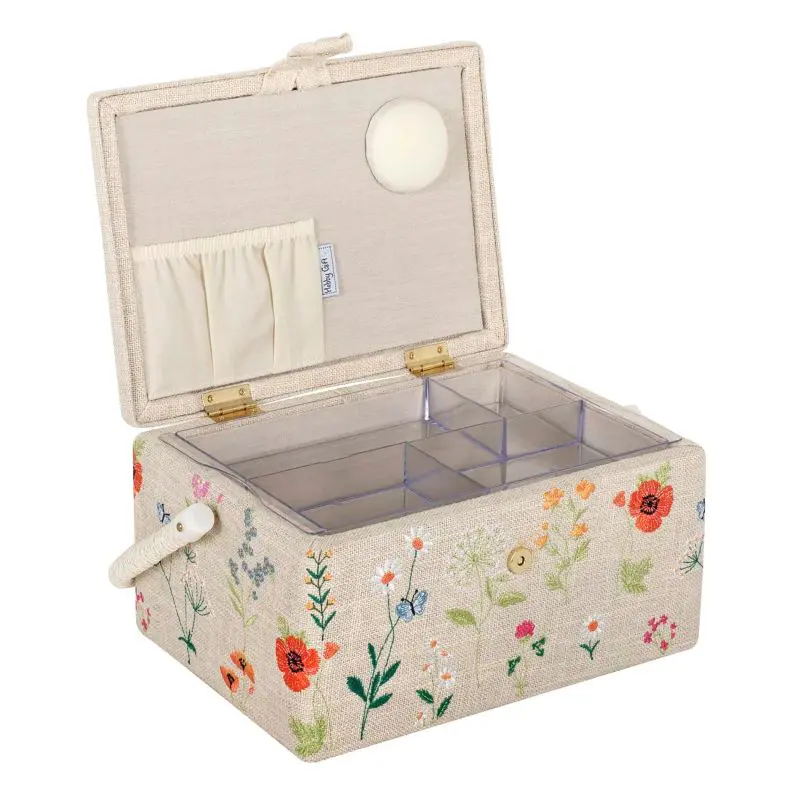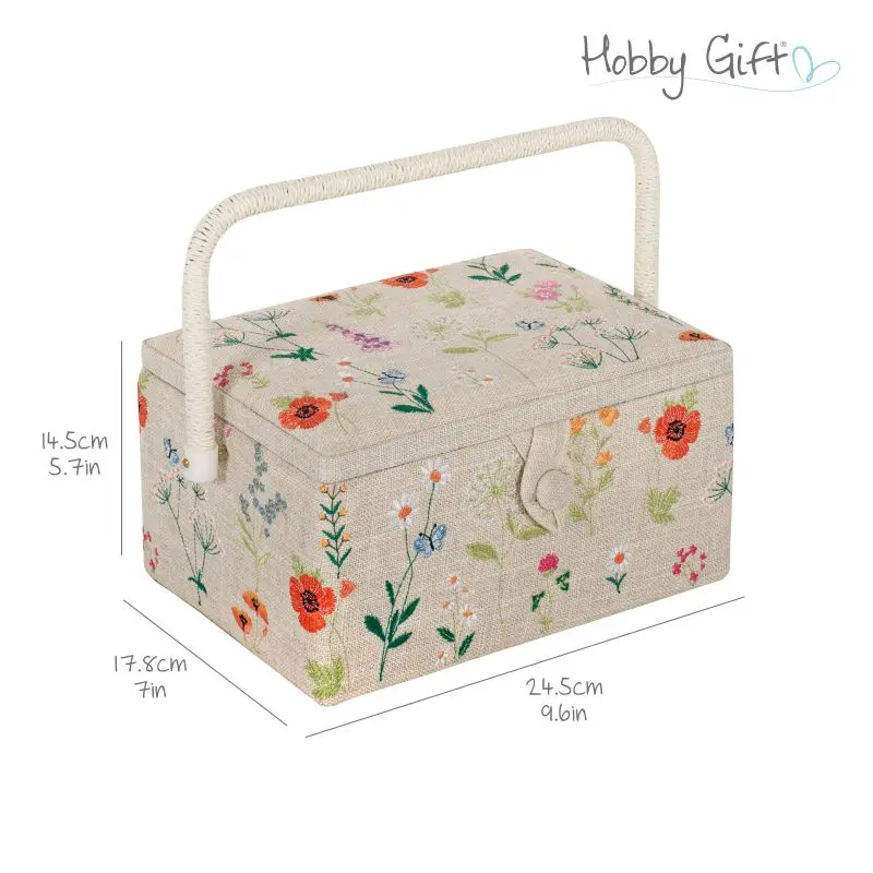Hobby Gift Sewing Box (Medium) – Embroidered Wildflowers Design