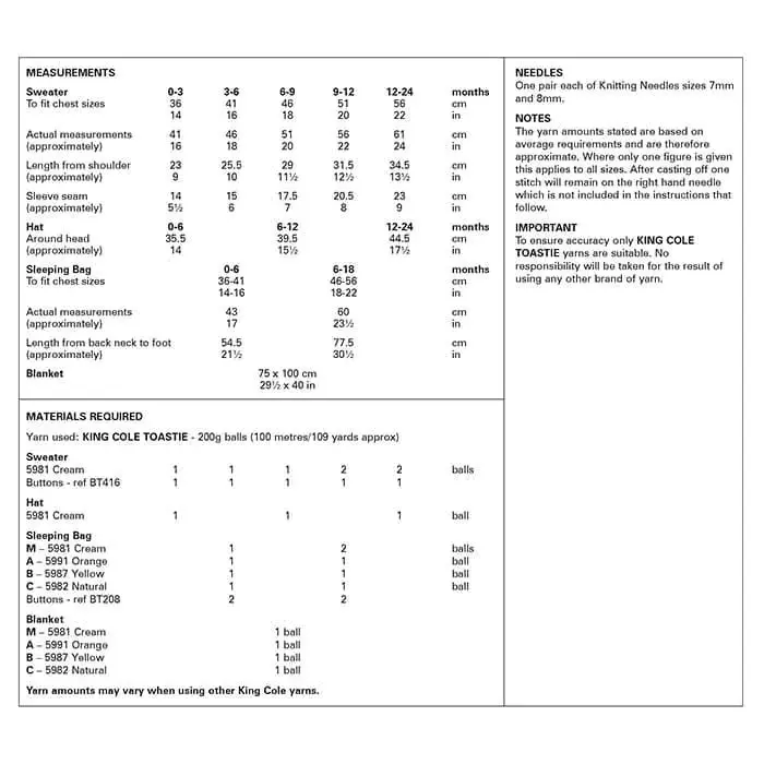 🧶 King Cole 6229 Toastie Baby Knitting Pattern – Baby Set in Super Chunky
