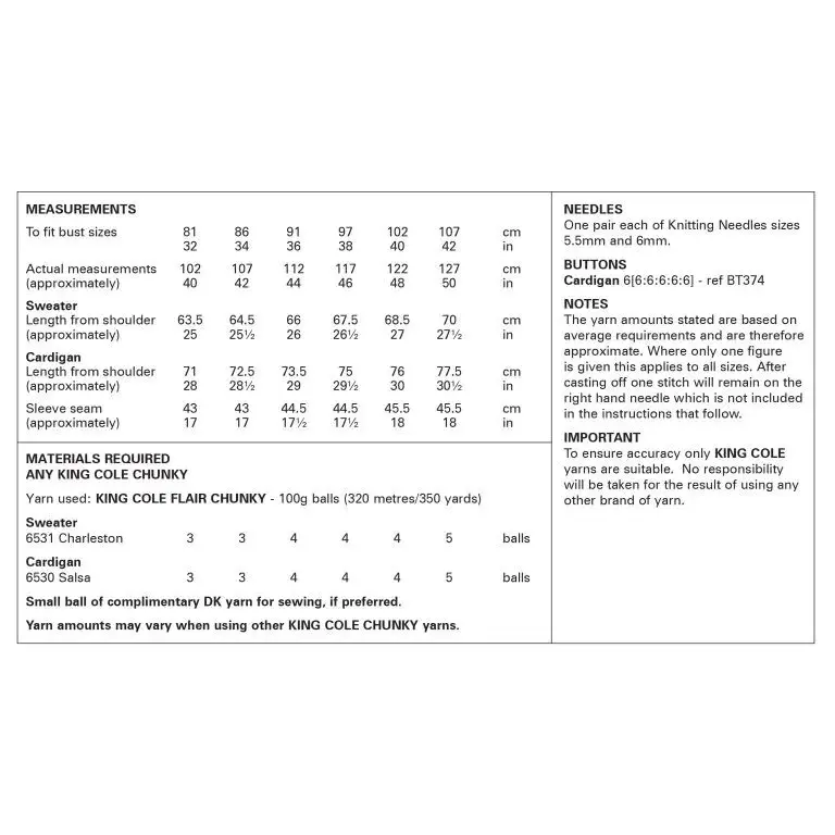 Importantly, King Cole 6384 is created for Flair Chunky yarn, which means: