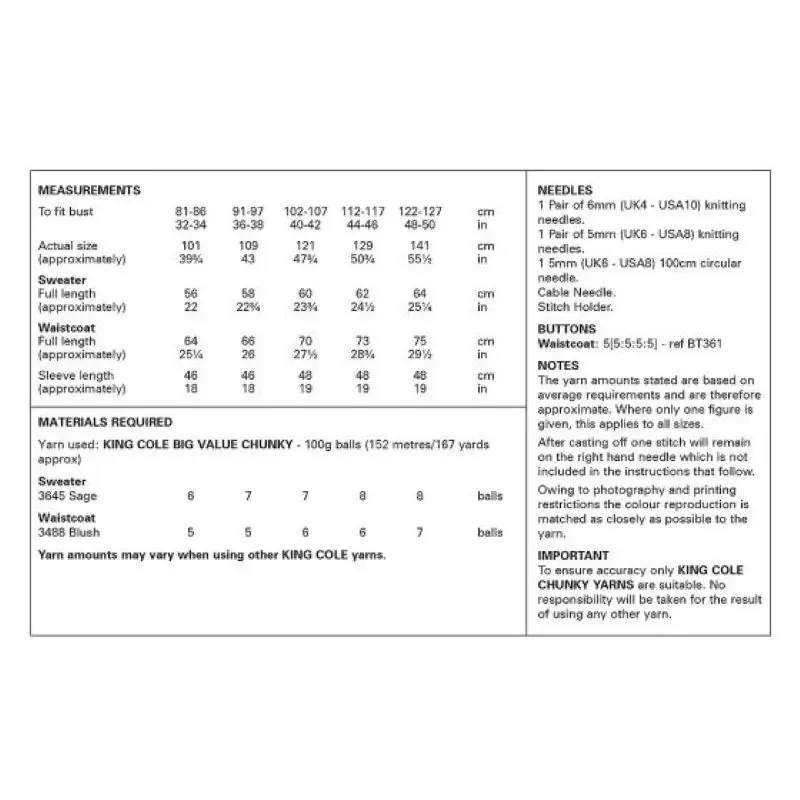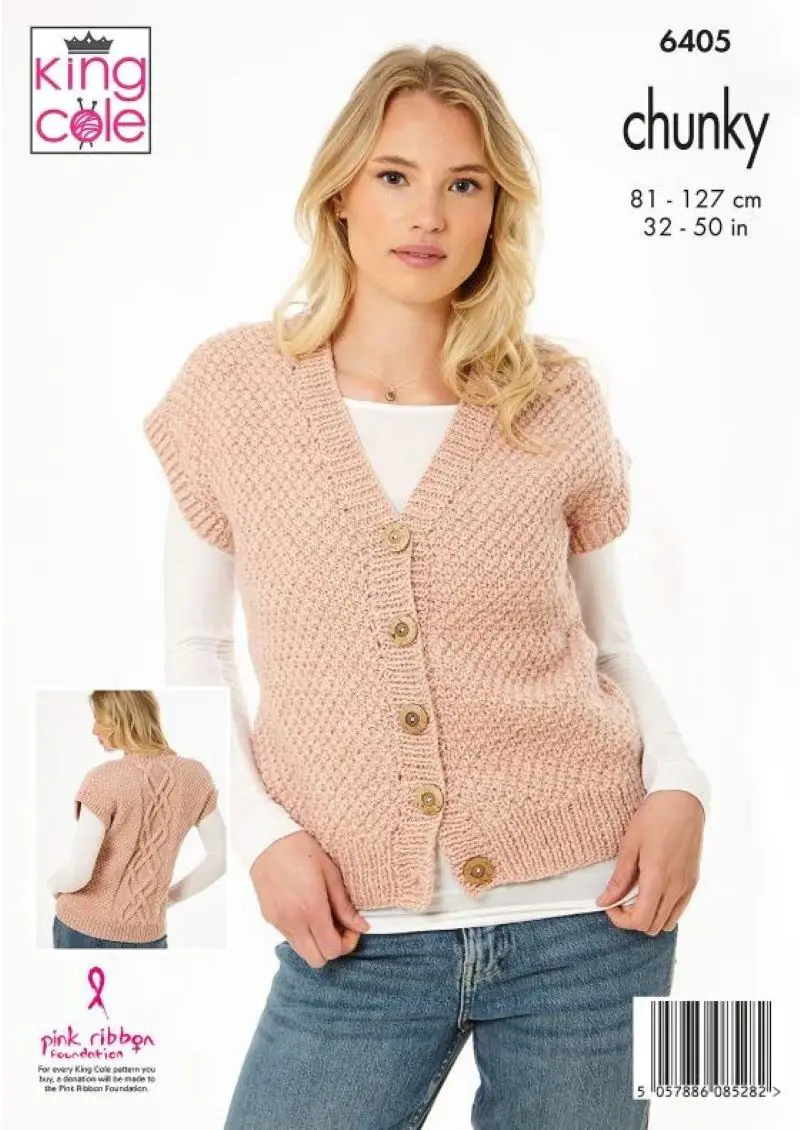 King Cole 6405 Ladies Chunky Sweater Waistcoat Knitting Pattern