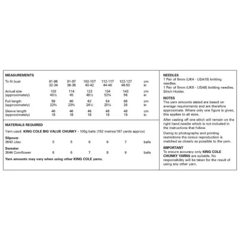 King Cole 6406 Ladies Chunky Sweater Slipovers Knitting Pattern