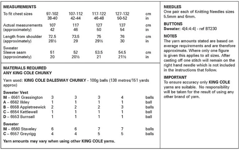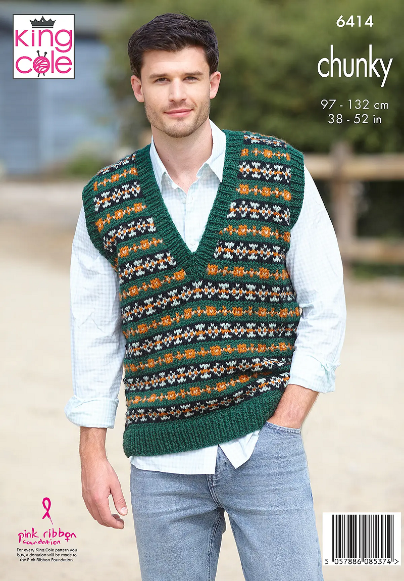 King Cole 6414 Mens Chunky Sweater Vest Knitting Pattern