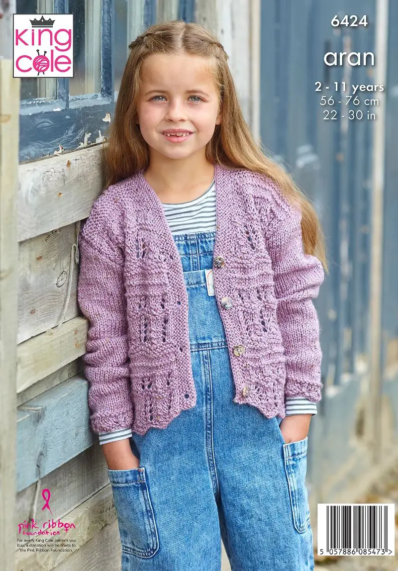 King Cole 6424 Child Aran Cardigan Knitting Pattern