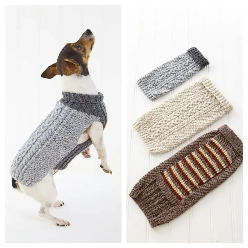 Create 3 different designed dog coats with this easy to follow knitting pattern.