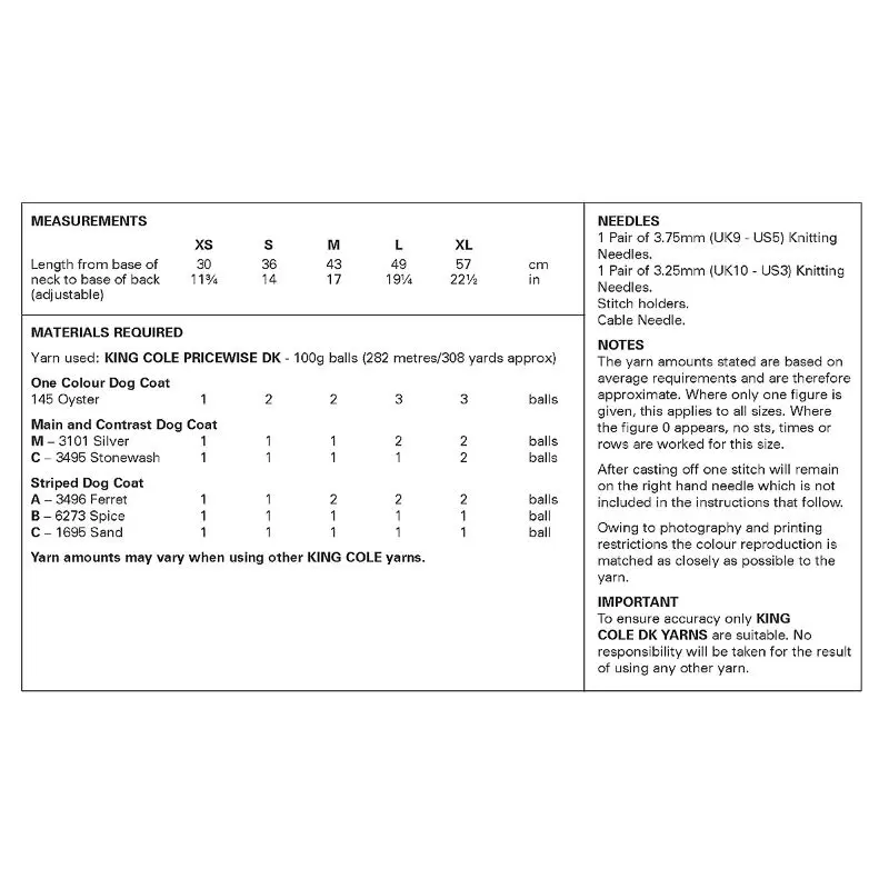 King Cole 6467 DK Dog Coat Knitting Pattern