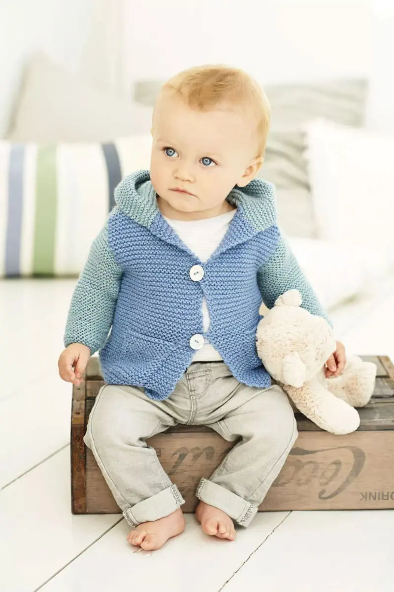 Inside, you’ll find everything you need to create a full handmade wardrobe. There are cosy cardigans, warm coats, sweet dresses, fun hoodies, and soft blankets. You’ll even find cute accessories like hats, bibs, and bootees. Each design uses King Cole Comfort DK yarn, which is soft, gentle, and easy to care for—perfect for little ones.