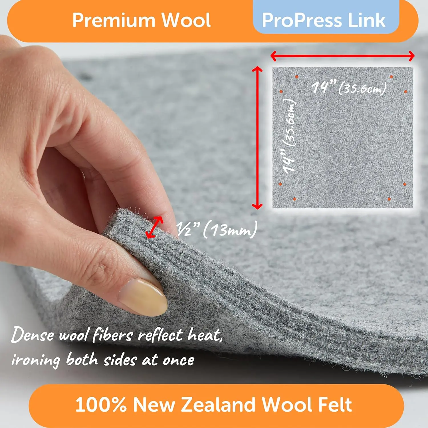 - SUPERIOR PERFORMANCE: 100% New Zealand wool, ½inch (13mm) thick, the dense wool fibres reflect heat, ironing both sides of the fabric simultaneously for quicker professional-level pressing.