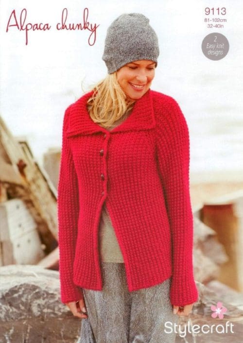 You will need for Stylecraft 9113 Adult Jacket Chunky Knitting Pattern: 1 Pair of 6mm knitting needles , stitch holder. 4 buttons for long jacket, 2 buttons for short jacket.