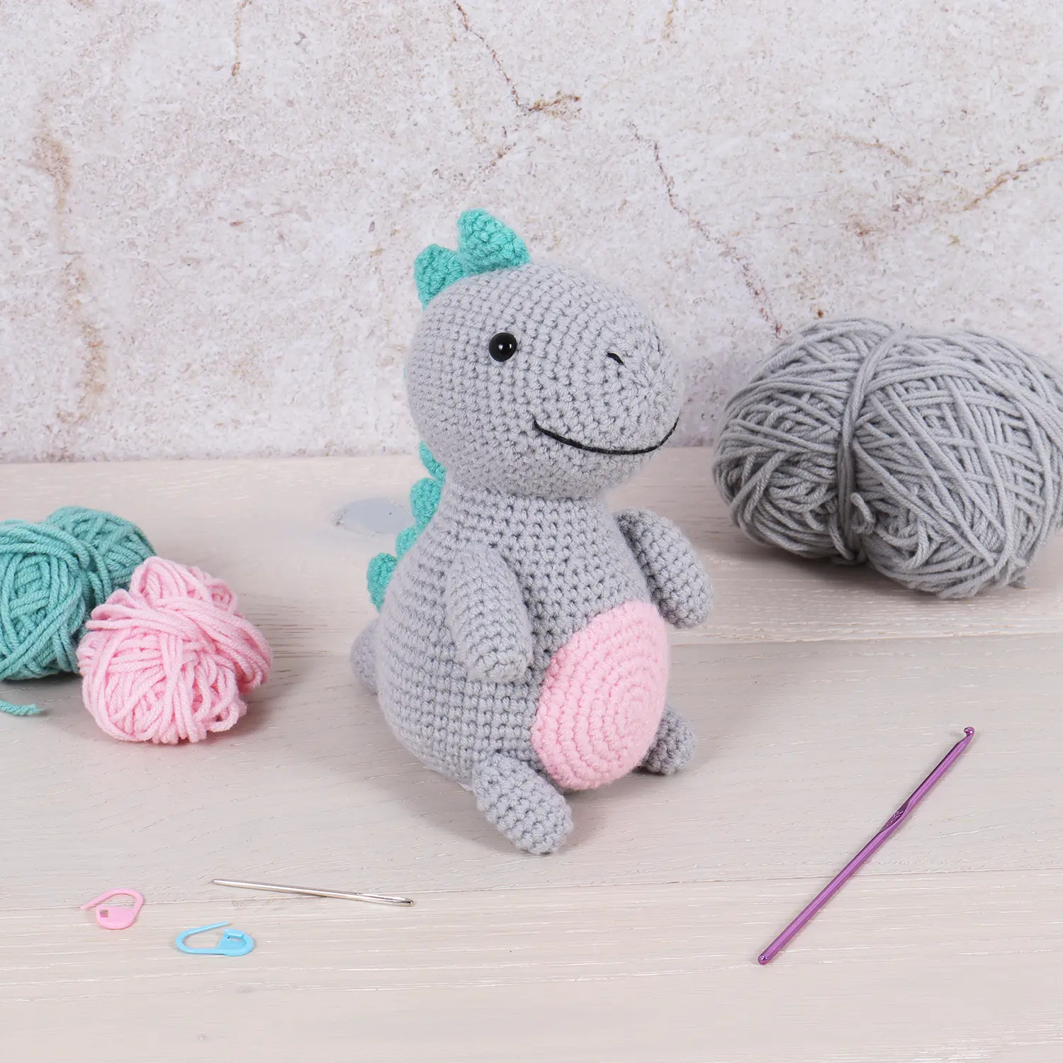 Bring a playful handmade character to life with the Trimits Amigurumi Dinosaur Kit. Designed for crafters with basic crochet experience, this kit allows you to create a sweet dinosaur featuring soft, rounded shapes and charming stitched spikes.